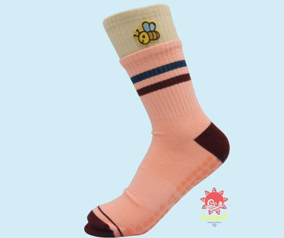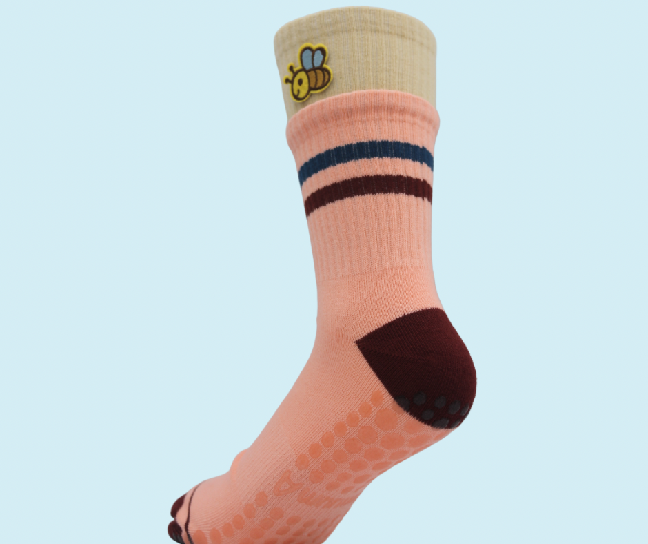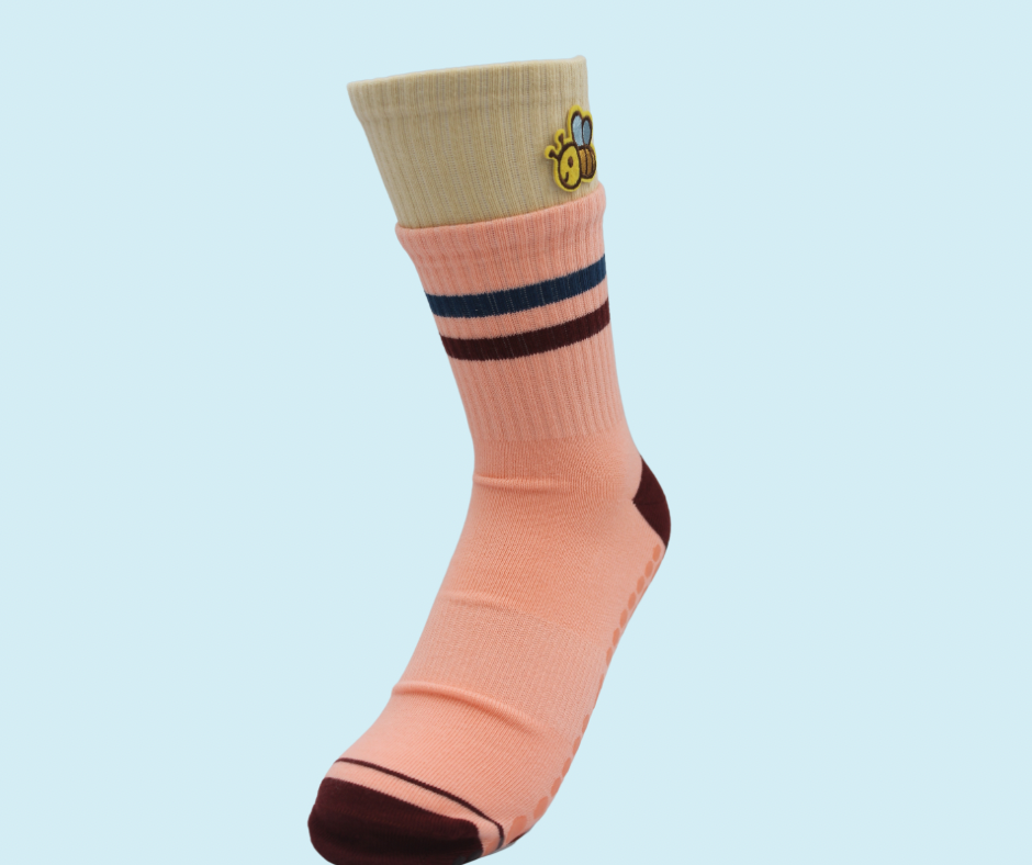 Our Pilates Yoga Women's Grip Socks are crafted in a premium cotton blend that provides a soft & smooth feel to the wearer. This crew length grip sock has hexagon pattern grips for maximum traction on any surface and added ribbed arch support for more flexibility and comfort. Reinforced toe & heel stitching for maximum durability. This particular sock is part of our Double Cuff design, it offers more coverage for women who like to wear taller socks in a unique way. One size fit most.